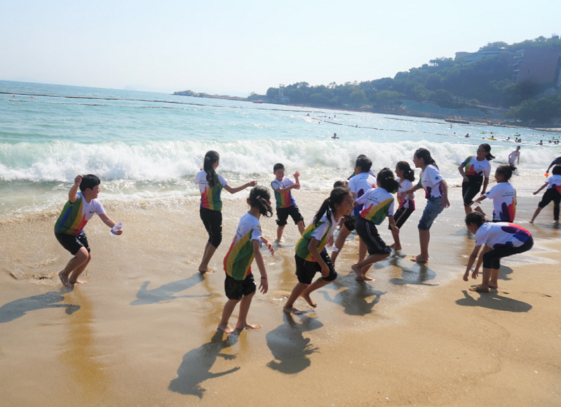 下午,孩子們到小梅沙海灘玩耍,第一次見到藍(lán)色大海,孩子們顧不上海水打濕褲子衣服,非常興奮在海邊追逐嬉鬧,興高采烈地迎著海風(fēng)奔跑,用沙子堆出孩子們心里的“城堡”,他們天真燦爛的笑臉像一朵朵盛開在海邊的花朵,整個沙灘洋溢著孩子們一陣陣尖叫聲和歡呼聲。