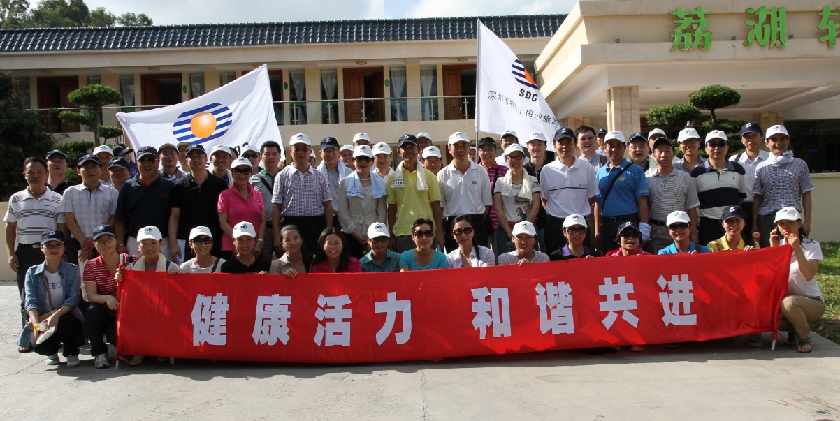 下午4點,集團(tuán)總部全體員工和小梅沙旅游中心中層以上管理人員分別到達(dá)西麗果場,大家高舉著特發(fā)集團(tuán)司旗和“健康活力,和諧共進(jìn)”的標(biāo)語集體合影,小梅沙旅游中心朱振聲總經(jīng)理簡短講話后,活動開始。大家向著果園進(jìn)發(fā),成熟的荔枝早就掛滿枝頭,品嘗佳果,大家心情像荔枝一樣甜蜜。從果園出來后,大家來到西麗湖畔,開展團(tuán)隊游戲。集團(tuán)總部和小梅沙旅游中心分別組隊參與了3個團(tuán)隊合作的游戲項目。雖然只是簡單的游戲,但大家都十分認(rèn)真,分發(fā)揚(yáng)團(tuán)隊合作精神,每個游戲都積極討論致勝之術(shù),全情投入。集團(tuán)張俊林董事長全程都和大家一起參與荔枝采摘活動和游戲項目。在歡聲笑語中,大家一掃平時工作中緊張的情緒,放飛心情,享受著難得的輕松與閑適。最后大家手挽手肩并肩高歌一曲《真心英雄》,圓滿結(jié)束了這次戶外活動。