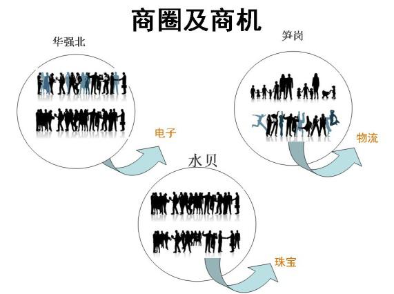 大家知道,華強(qiáng)北電子商圈、筍崗物流商圈都有其獨(dú)特鮮明的商業(yè)特性,形成了各自繁華的商圈和大量的商機(jī),已成為深圳市著名的商業(yè)區(qū)。如下圖所示: